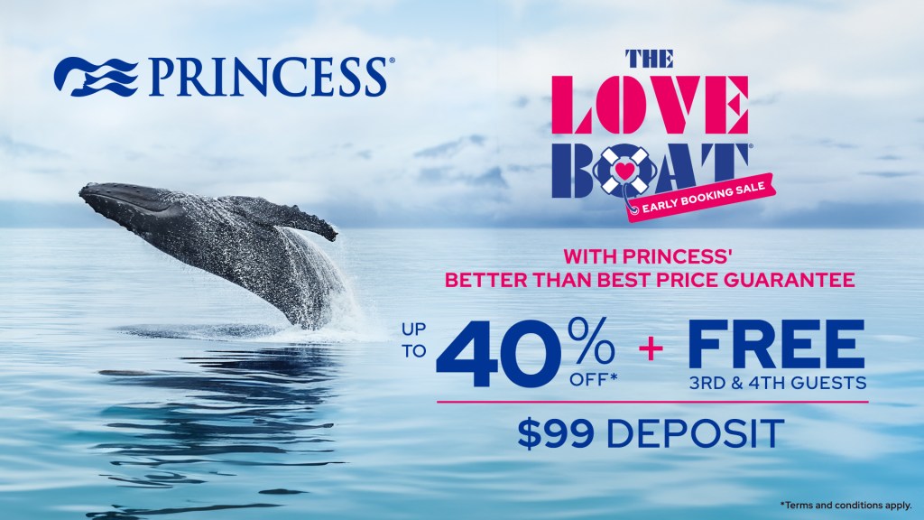 The Love Boat® Early Booking Sale has something for everyone: Up to 40% off, 3rd & 4th guests sail free, and $99 deposits! Best of all, when you book any 2025 or 2026 Princess® cruise between July 1 and August 28, 2024, you’ll save with a Better Than Best Price Guarantee. Contact Alliston Travel today for a quote or to secure your spot!